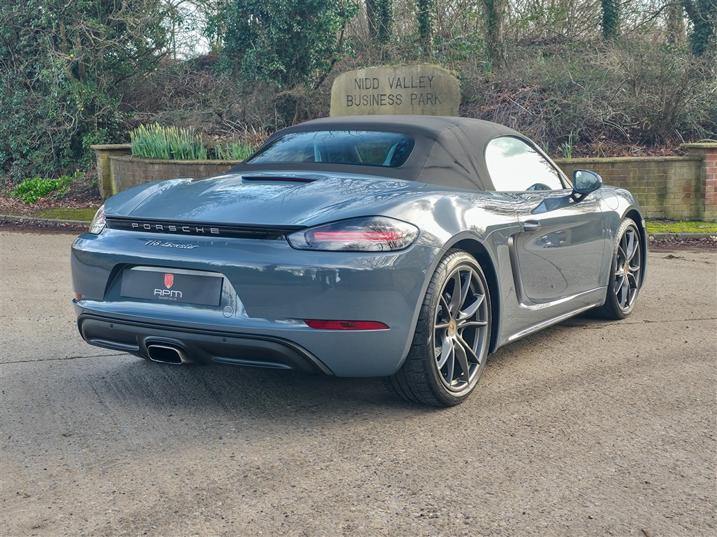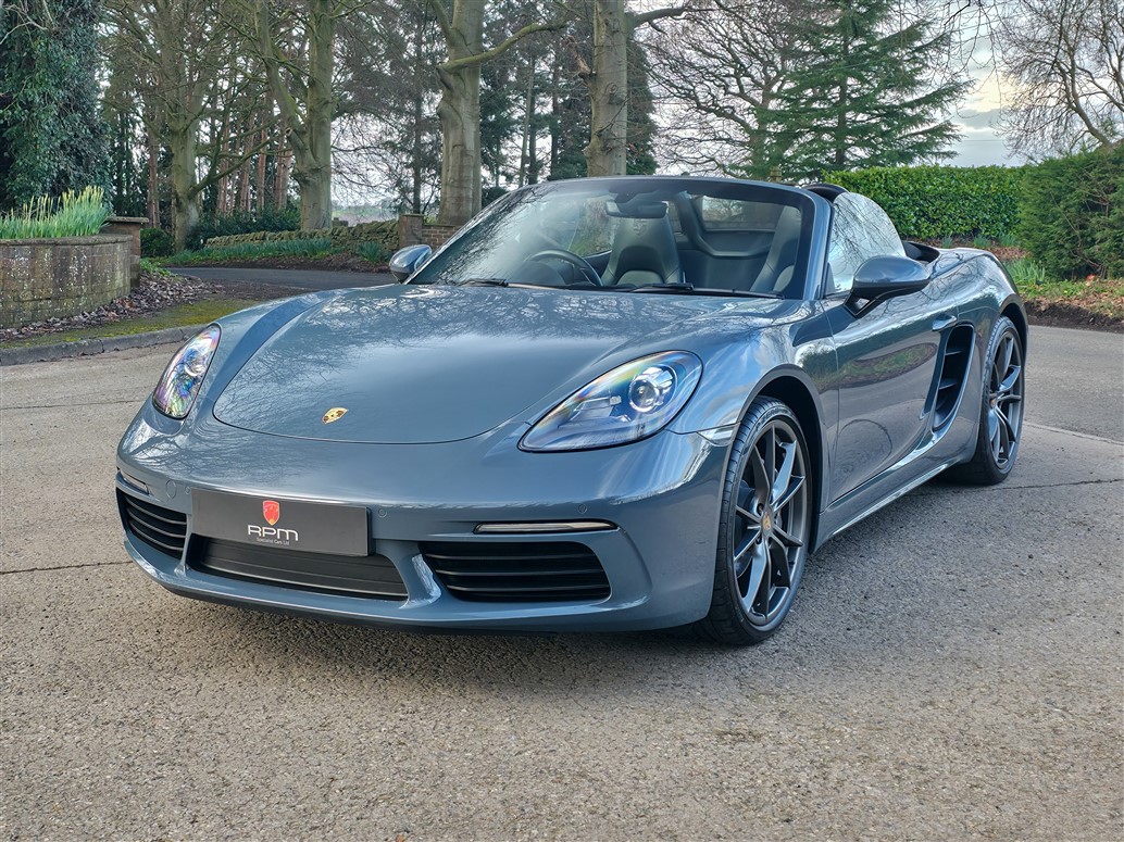RPM Specialist Cars are pleased to present this 2017 Porsche 718 Boxster in Graphite Blue Metallic with a Black cabriolet roof and Black leather interior. The 718 generation combines updated styling with the mid-engine balance that defines the Boxster, and this colour combination complements the car’s clean, refined lines.
