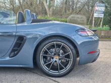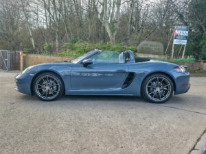 The 2.0-litre turbocharged flat-four engine produces 300 HP and 380 Nm of torque, paired with Porsche’s PDK transmission. With 0–62 mph achieved in approximately 4.7 seconds and a top speed of 170 mph, the 718 Boxster delivers strong acceleration and precise response. The mid-engine configuration provides excellent balance through corners, while the chassis offers a composed ride suitable for both everyday driving and longer journeys.