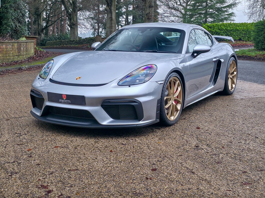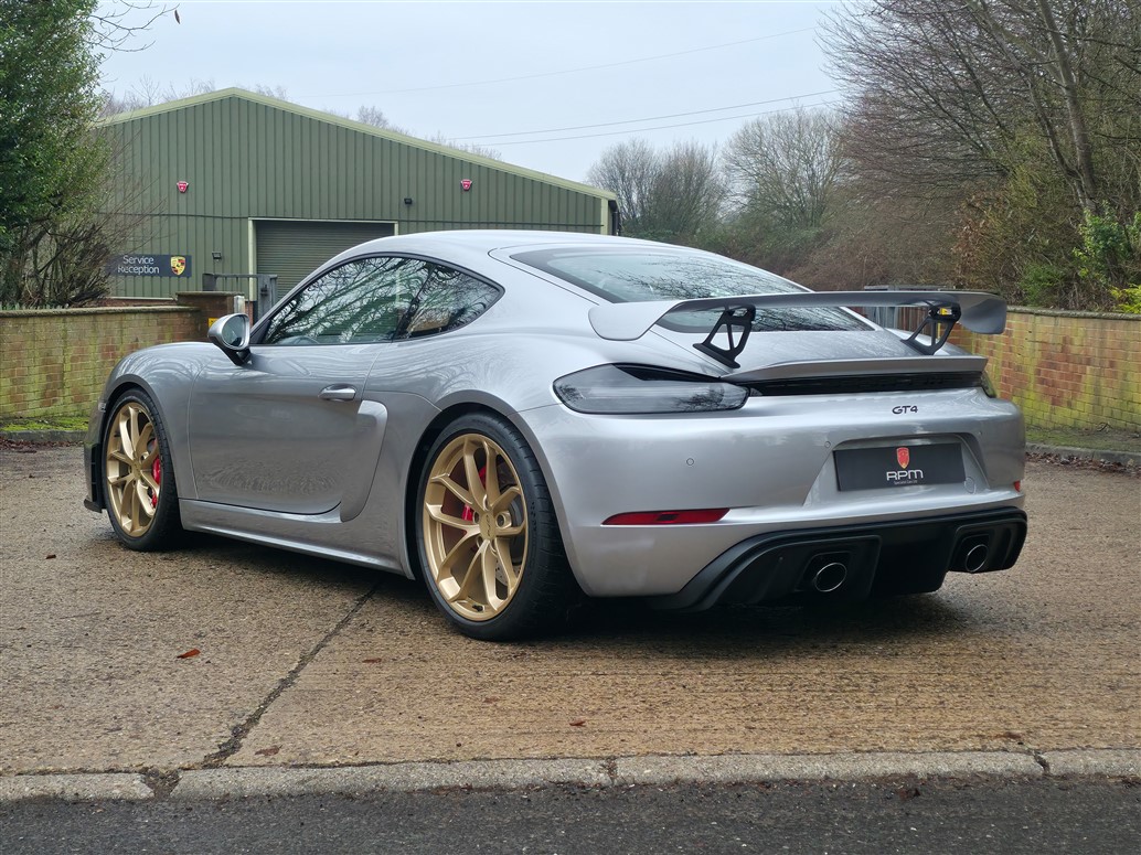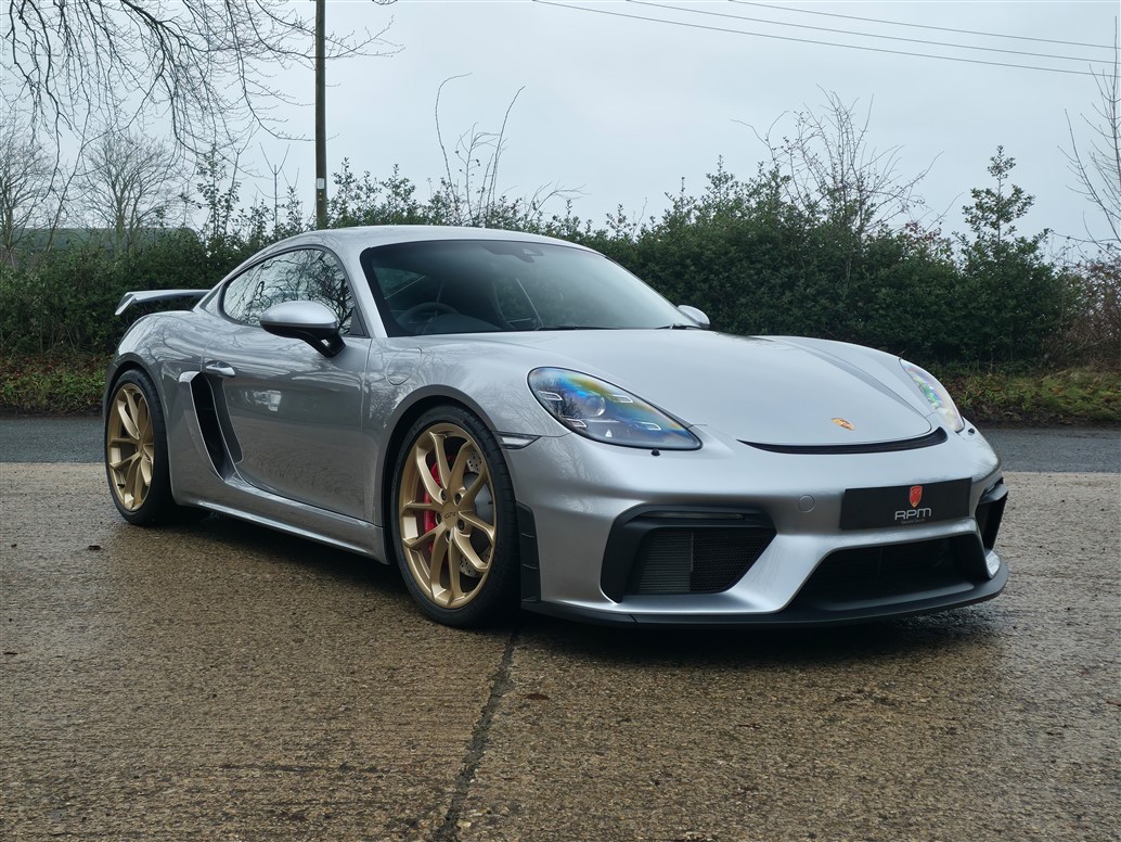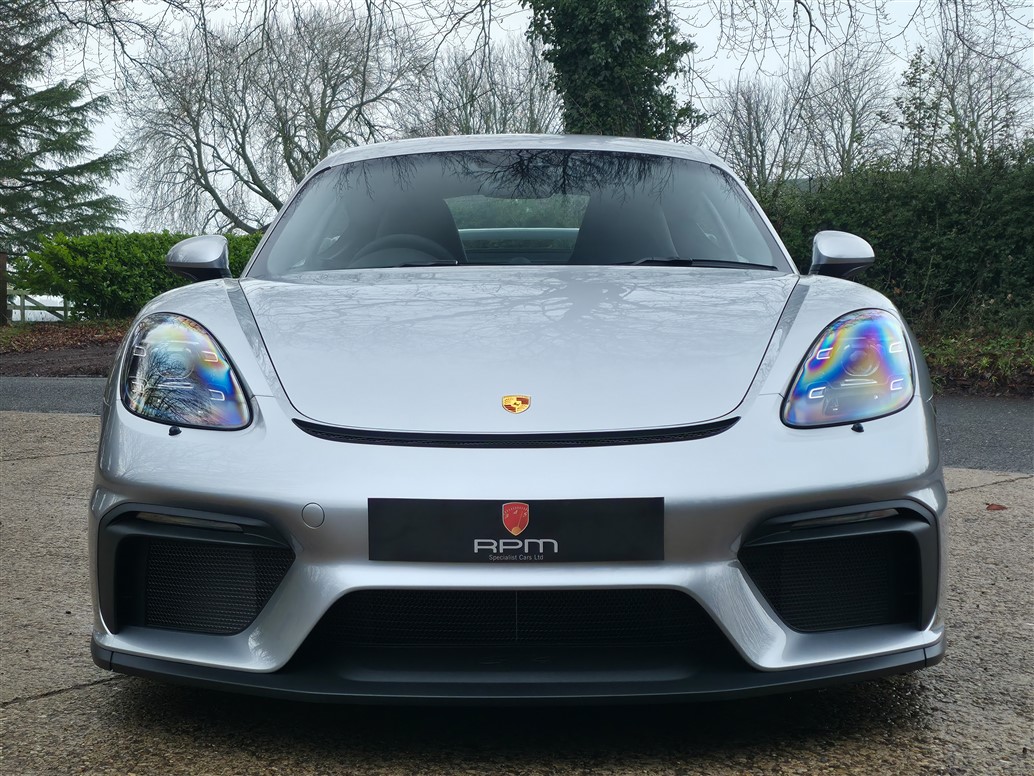RPM are thrilled to offer this exceptional Porsche 718 Cayman GT4 for sale. Finished in GT Silver Metallic with a Black leather and Alcantara interior, this example is further enhanced by Aurum Satin wheels.