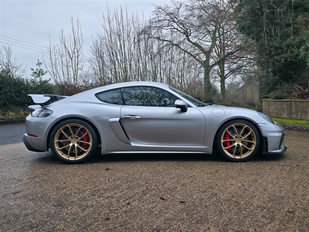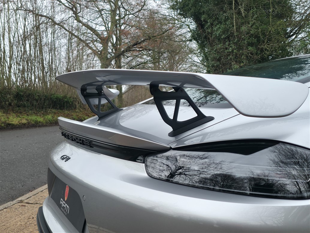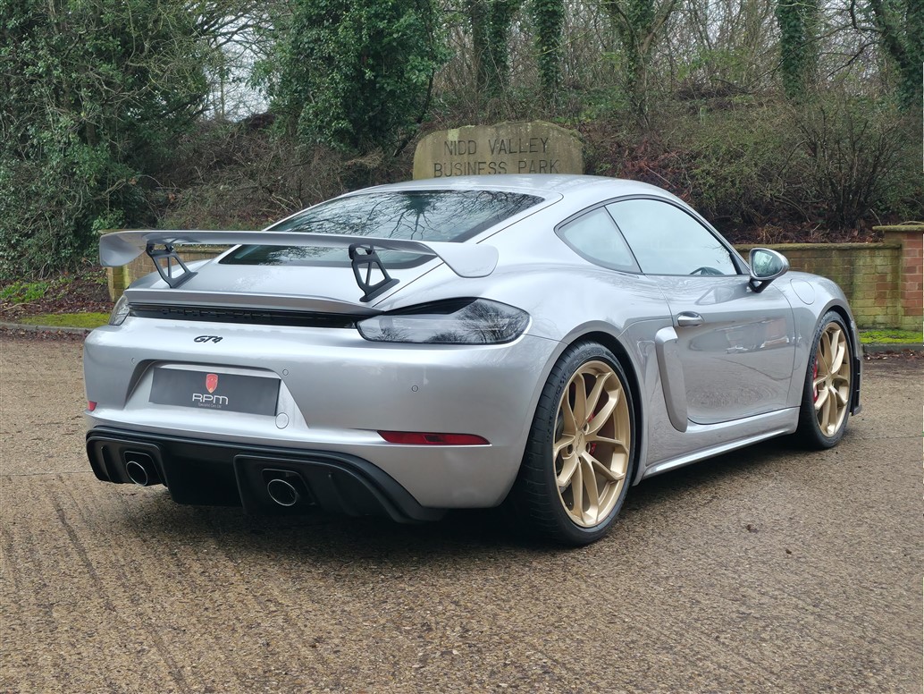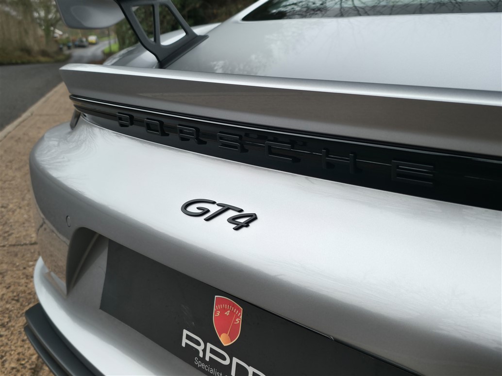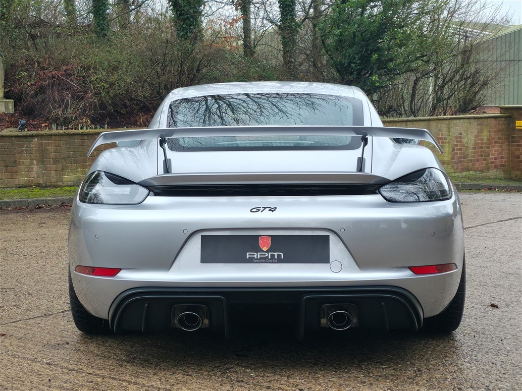 RPM are thrilled to offer this exceptional Porsche 718 Cayman GT4 for sale. Finished in GT Silver Metallic with a Black leather and Alcantara interior, this example is further enhanced by Aurum Satin wheels.