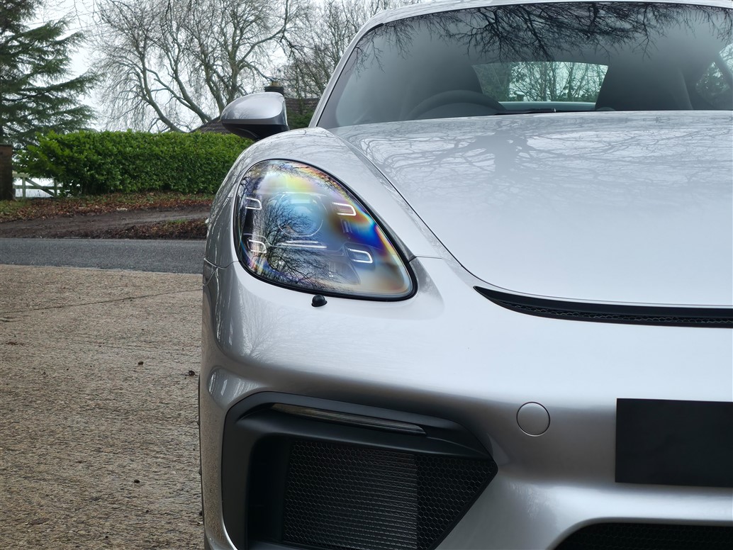 Additional Features: This 718 Cayman GT4 comes with extensive paint protection film (PPF), covering the front bumper, bonnet, front wings, headlights, mirrors, front roof section, door bottoms, side intake scoops, lower rear quarters, side skirts, rear bumper, rear lights, and even the door handles.