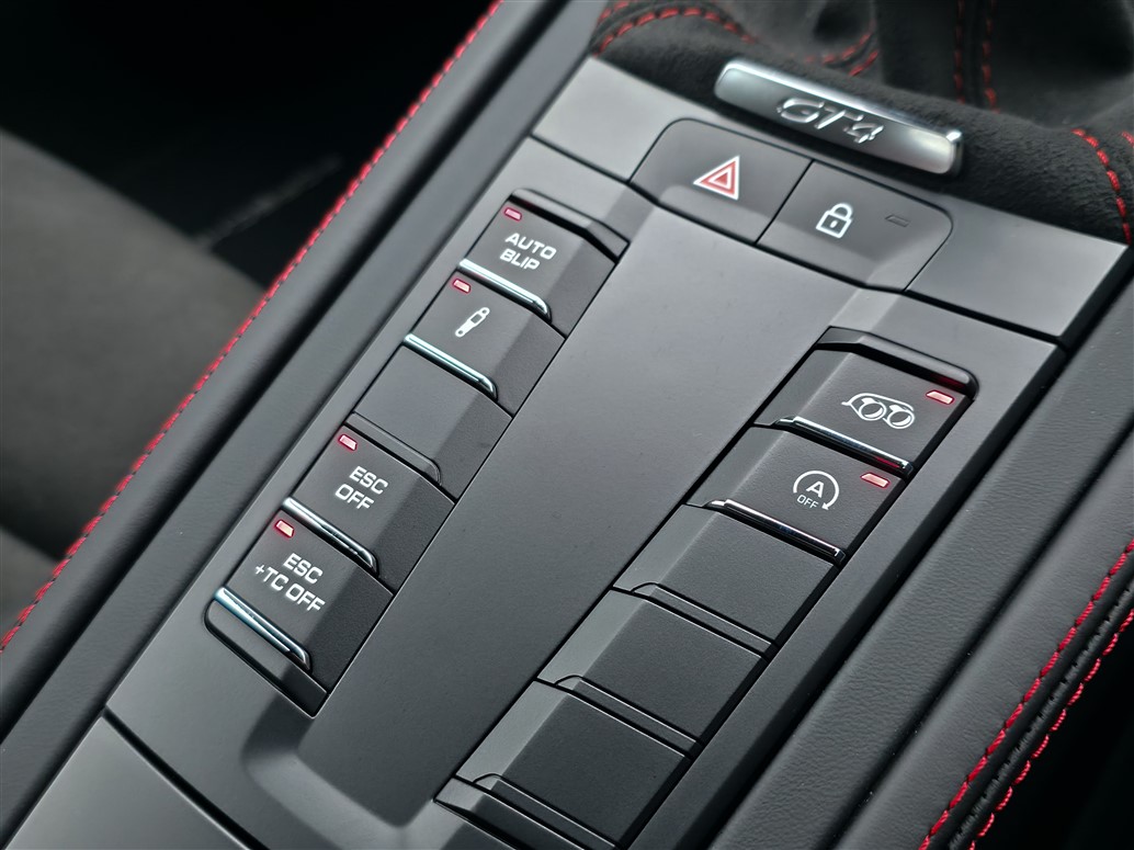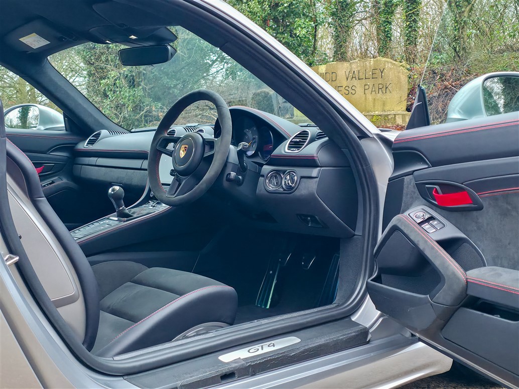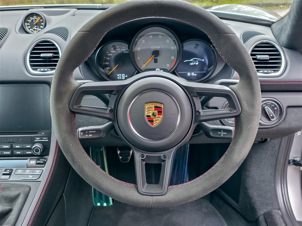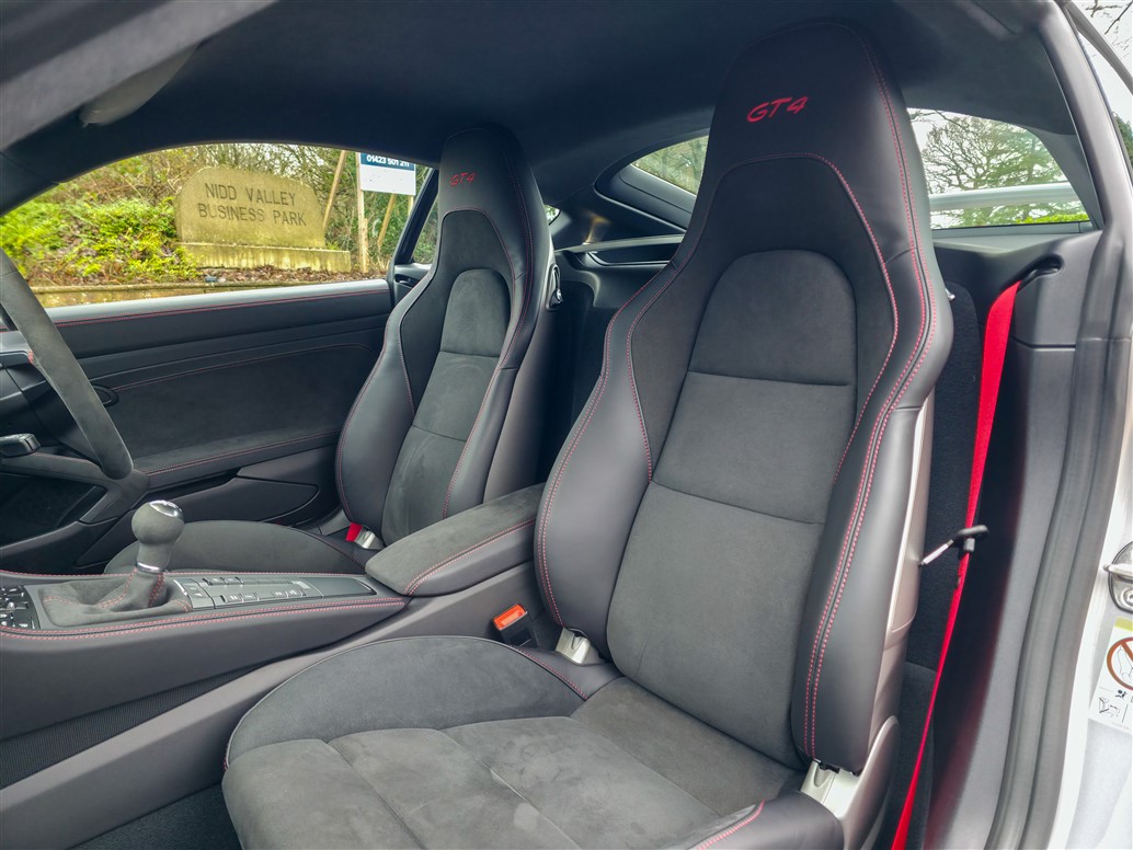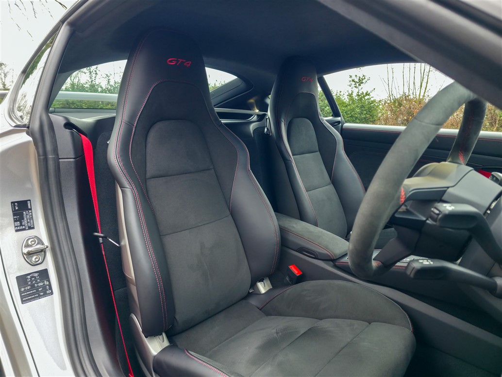 This GT4 has been thoughtfully specified to offer the ideal balance between driver engagement and everyday usability. The 18-way adaptive Sports Seats provide excellent comfort and support, making the car equally suited to longer journeys as it is to spirited driving. Steel brakes are fitted, a configuration favoured by many enthusiasts for their strong, consistent performance, improved feel on the road, and lower long-term running costs without detracting from the car’s formidable capabilities on track.