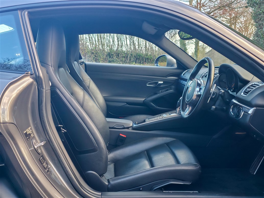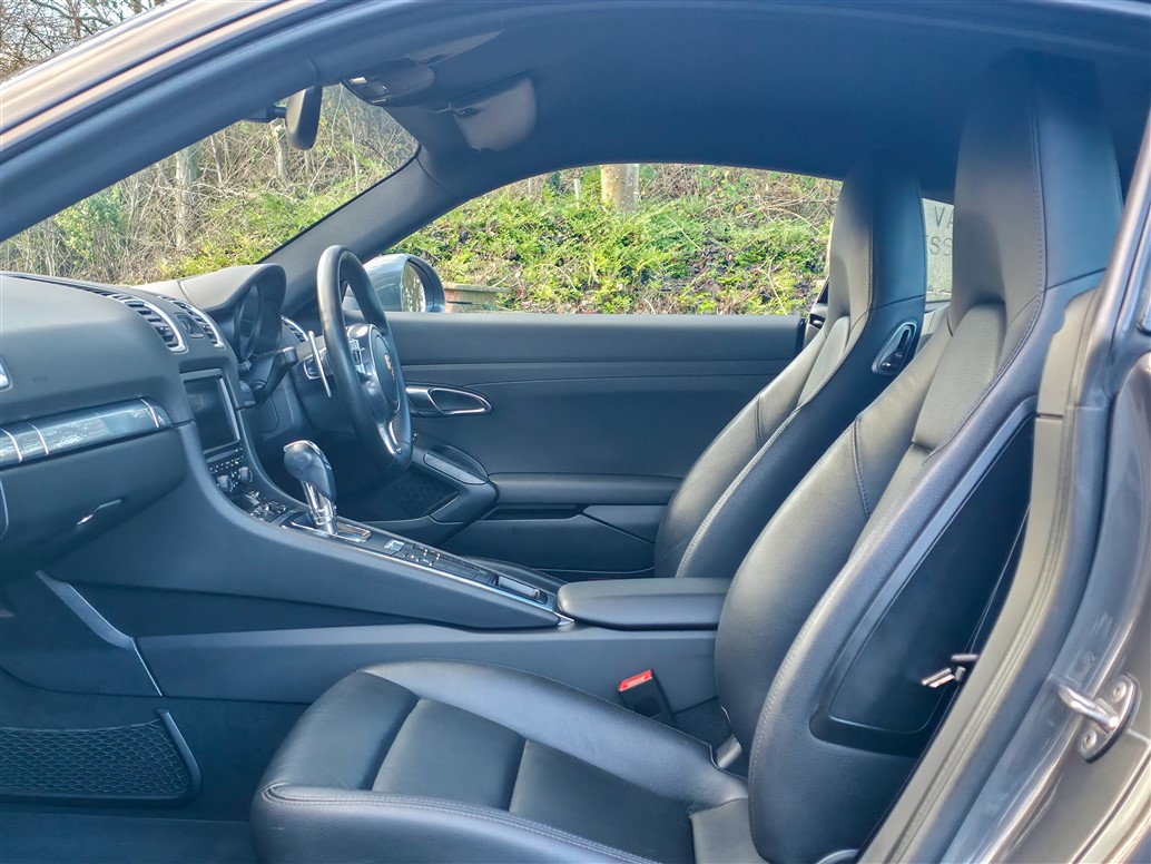Powered by a 2.7-litre naturally aspirated flat-six engine producing 275 BHP and 290 Nm of torque, this Cayman is paired with the 7-speed Porsche Doppelkupplung (PDK) transmission. The mid-engine layout delivers excellent balance and responsiveness, resulting in a composed yet engaging driving experience. Performance figures include a 0–62 mph time of 5.6 seconds and a top speed of 164 mph, combining usability with genuine driver appeal.