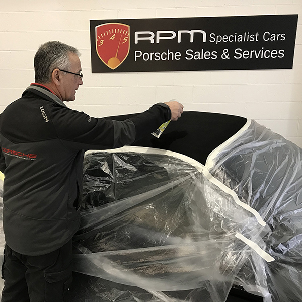 Full clean and decontamination prior to product application, the hood is fully dried while all paintwork and edges are protected using a plastic film. The roof is then treated with a waterproof sealant which helps to repel dirt, water and protects against discolouration from UV rays.